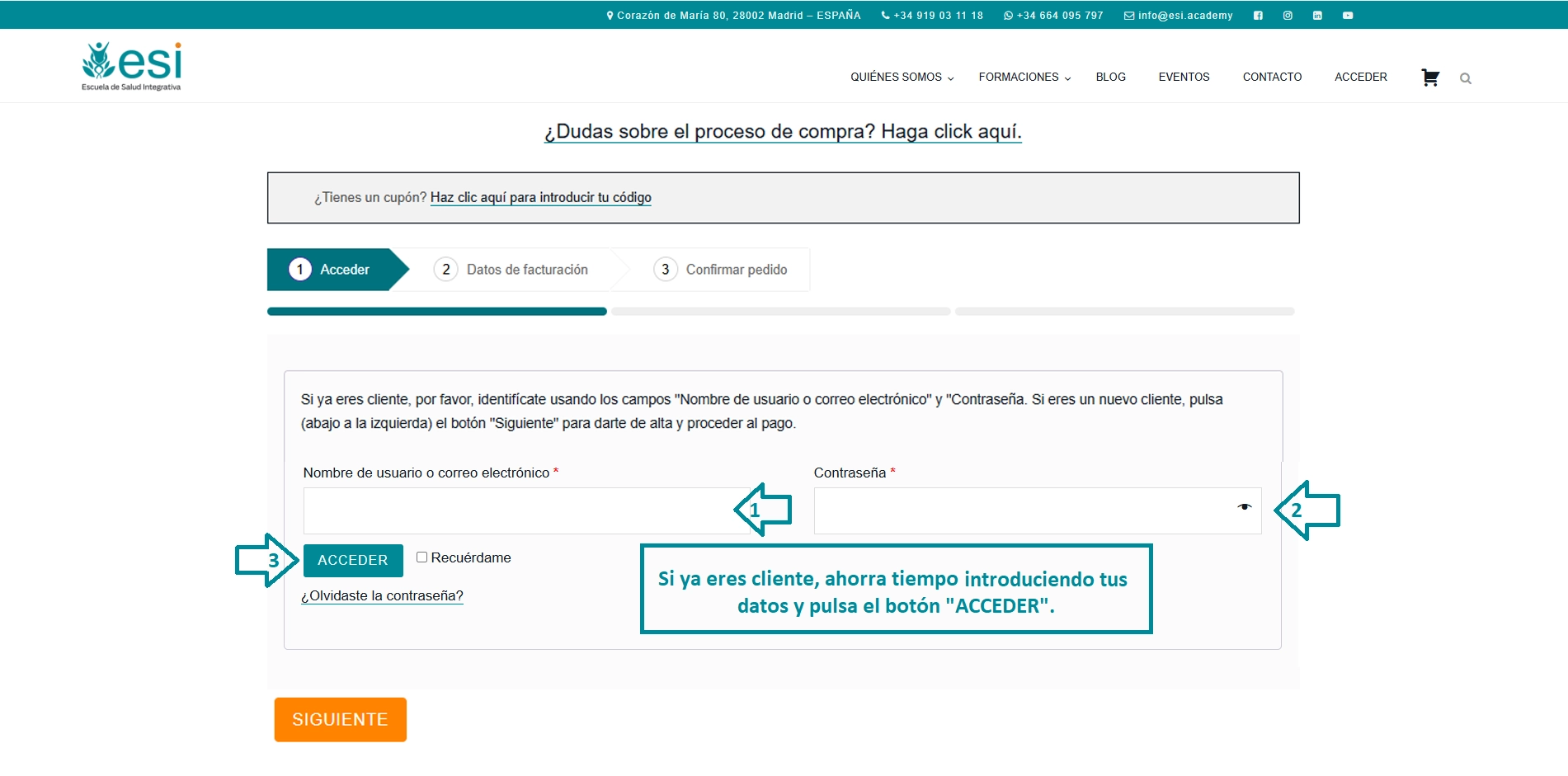 Al identificarte con tu usuario y contraseña, tus datos de cliente se rellenarán de forma automática.